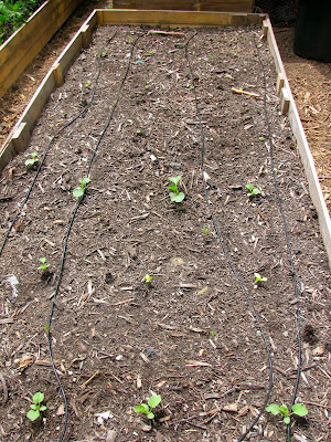 The northeast quadrant of the garden has its own drip irrigation system now! Bit by bit. This now relieves us of a good 30 minutes of near-daily labor, and I love seeing the small amount of water it takes to water everything now.